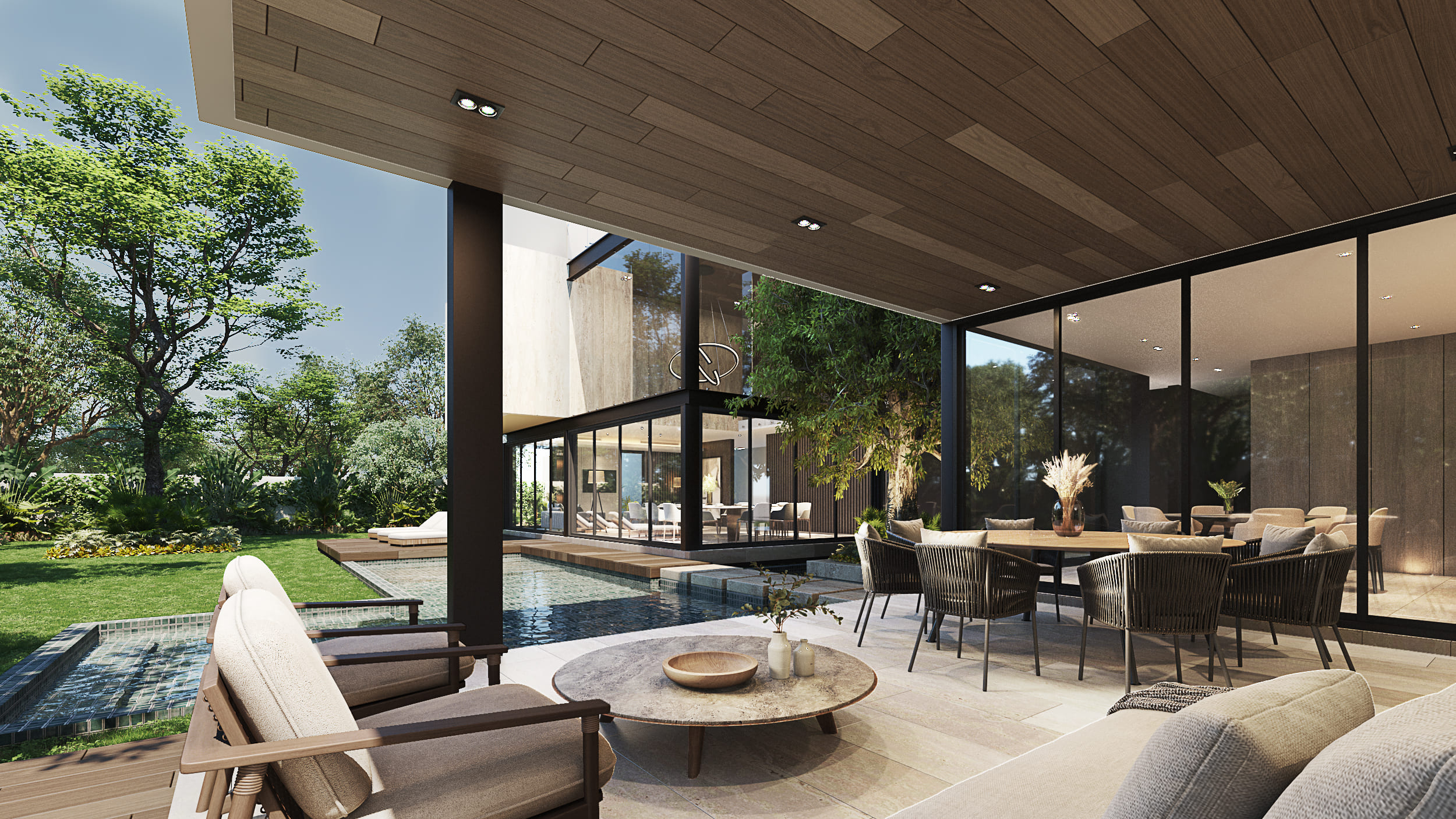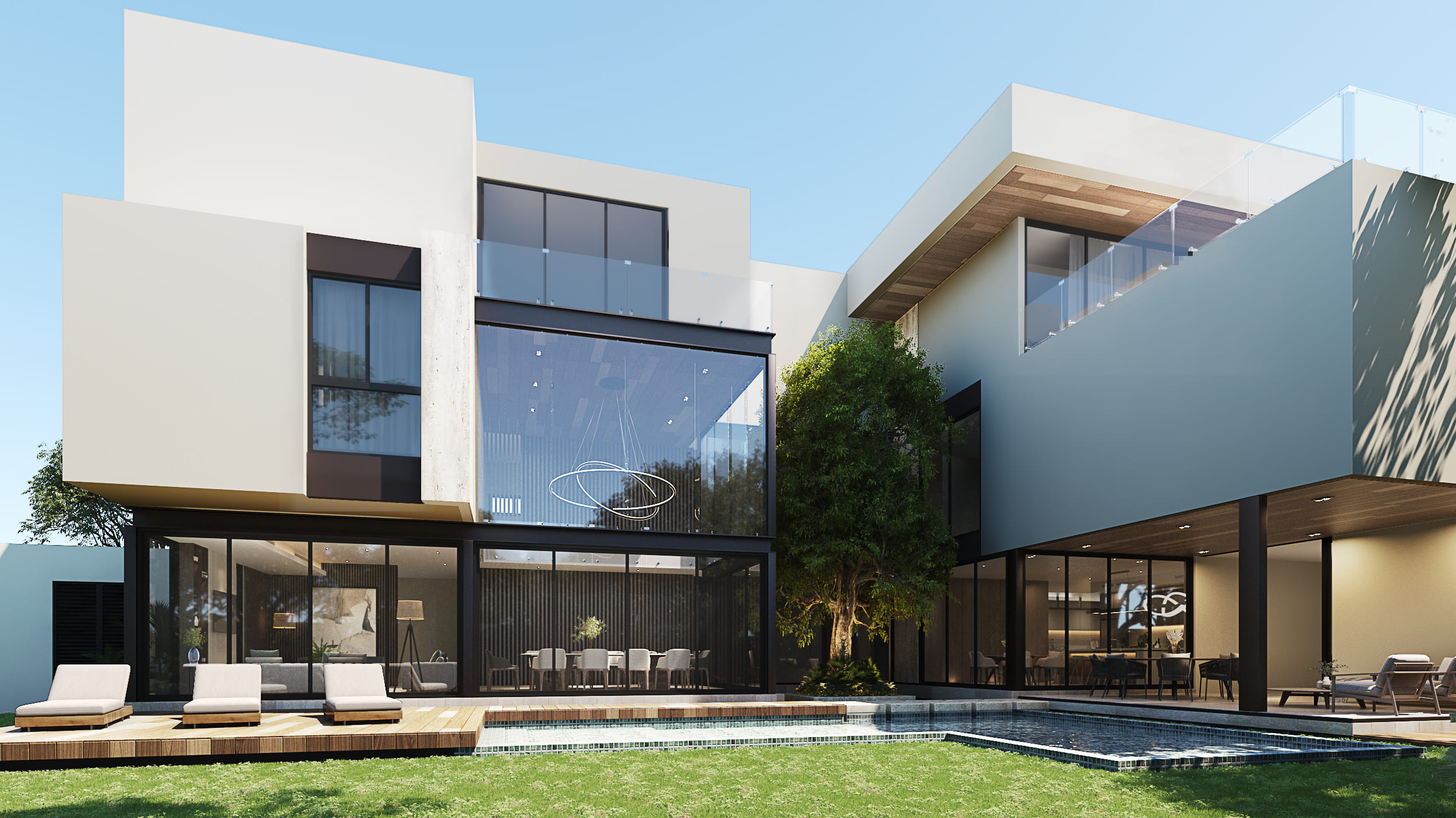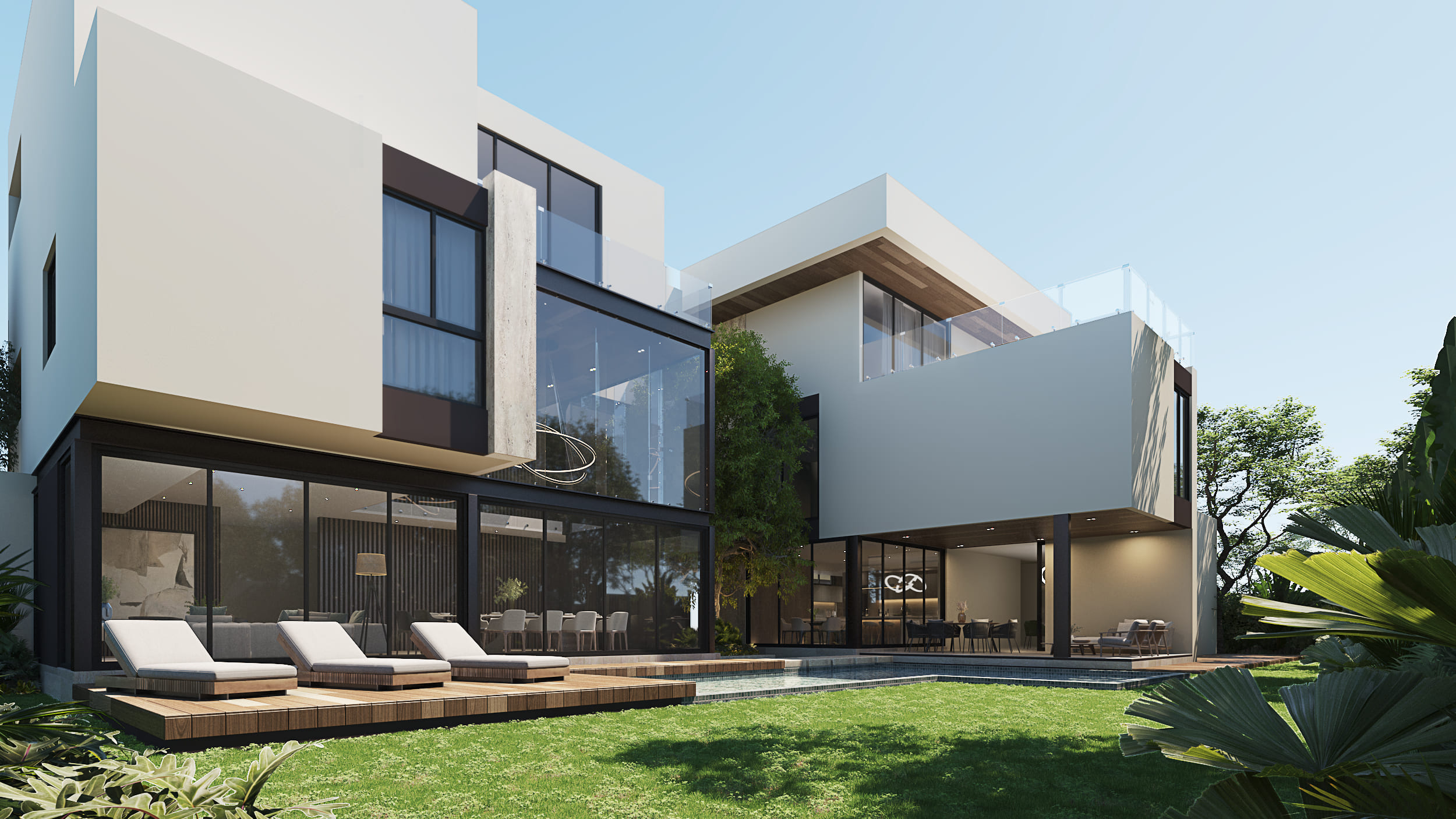 A residential project developed within the CABO NORTE complex, in an exclusive area of the city of Mérida. The main challenge of this project was reducing the Land Occupation Coefficient. This was addressed by leaving large open areas on the plot and designing a more vertical structure with three levels of construction.